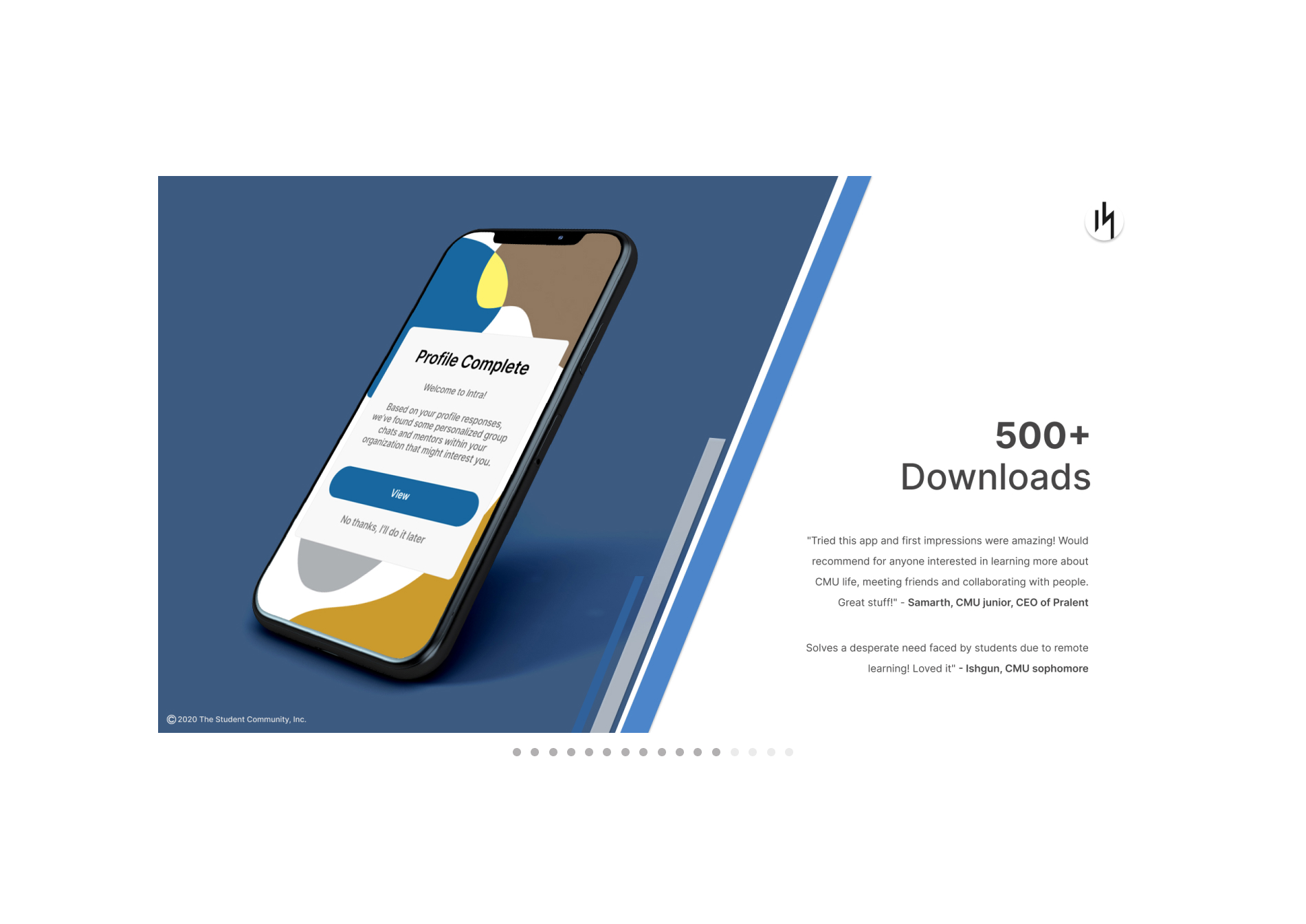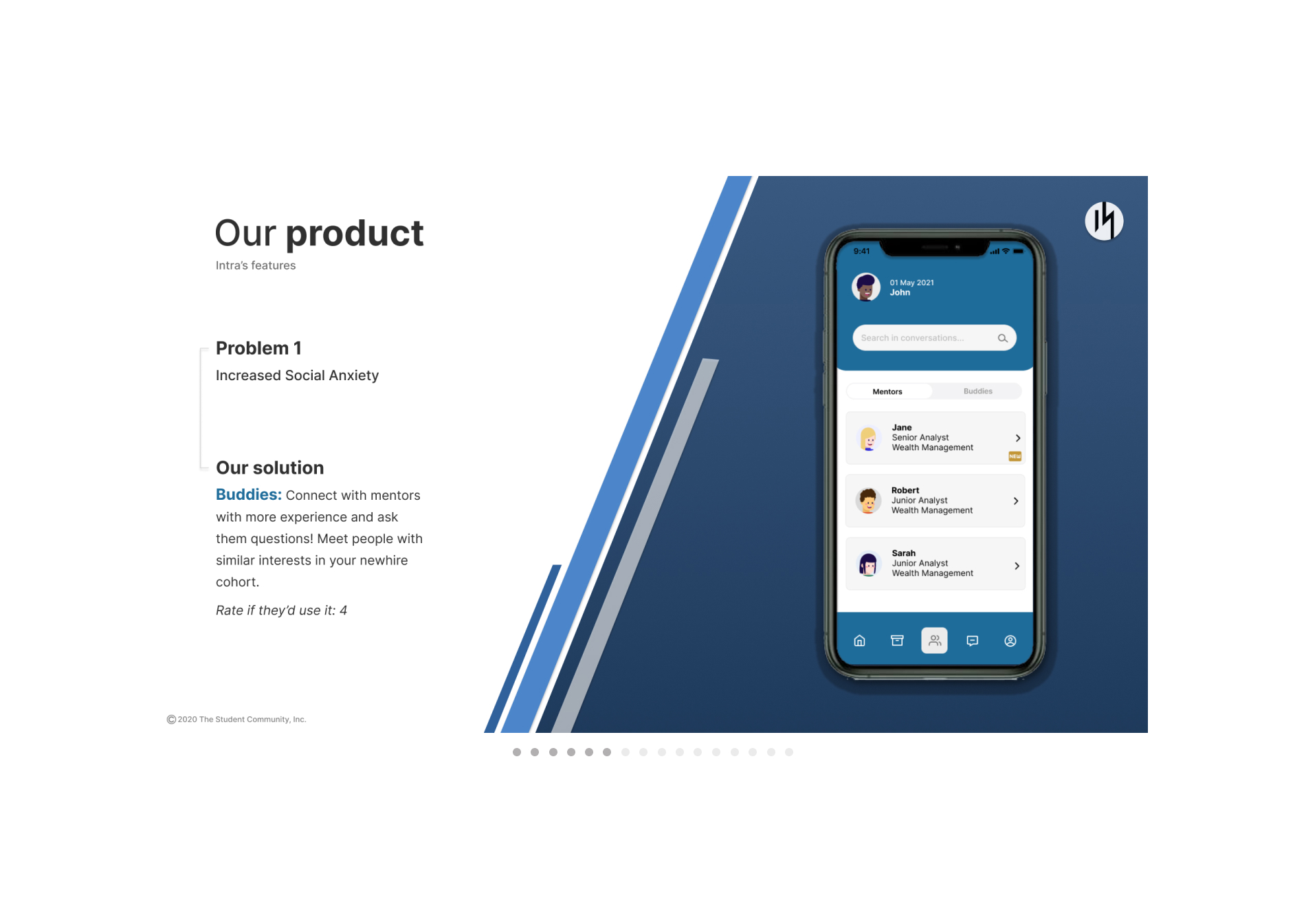 During the summer 2021 we developed the Intra App for Corporations and we started to look for clients interested in it. Our mission is to support the mental health of both students and workers, especially during this difficult time, where everyone feels lonely and scared to ask for help. If you want read more about our history and achievements take a look to our website!