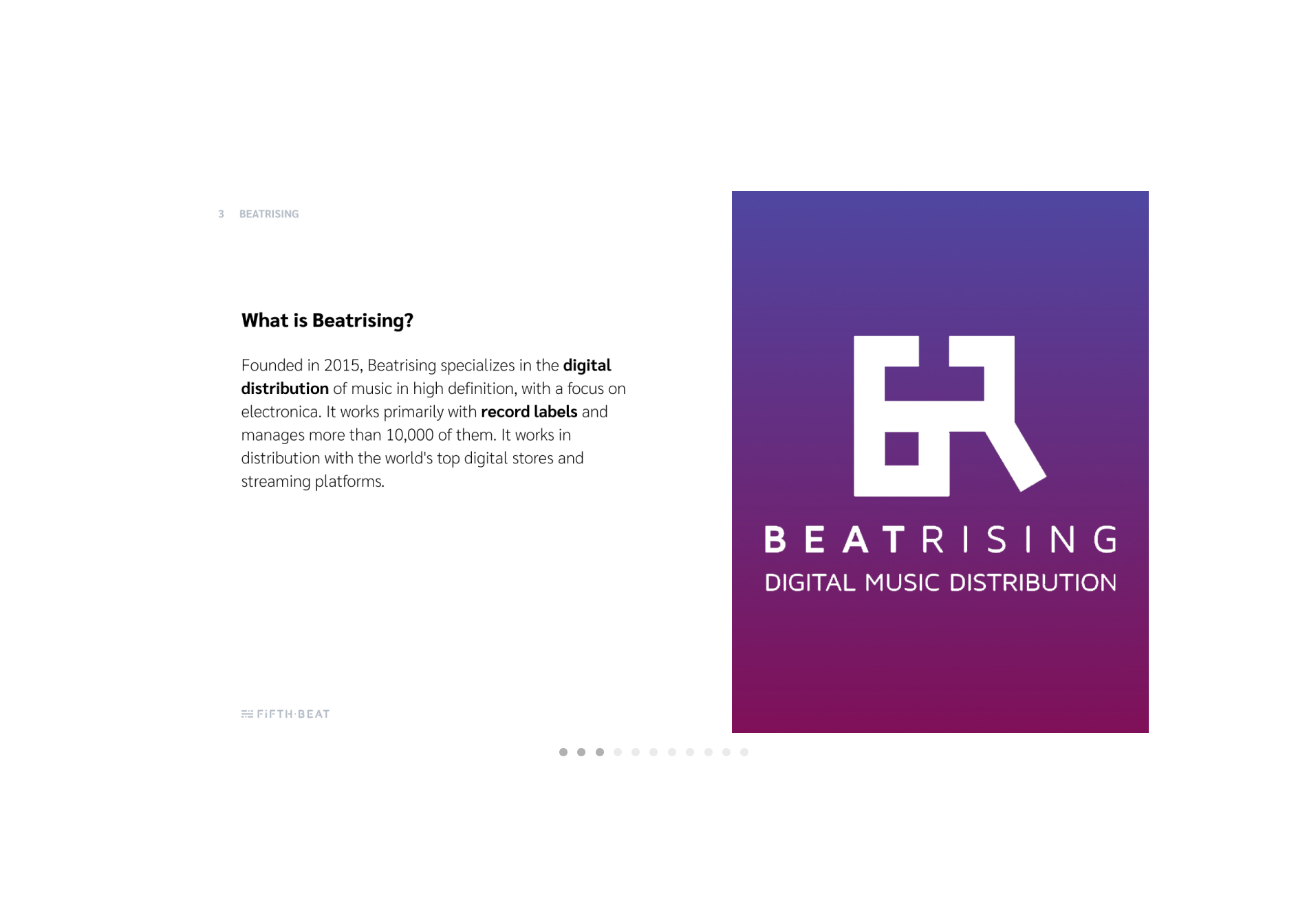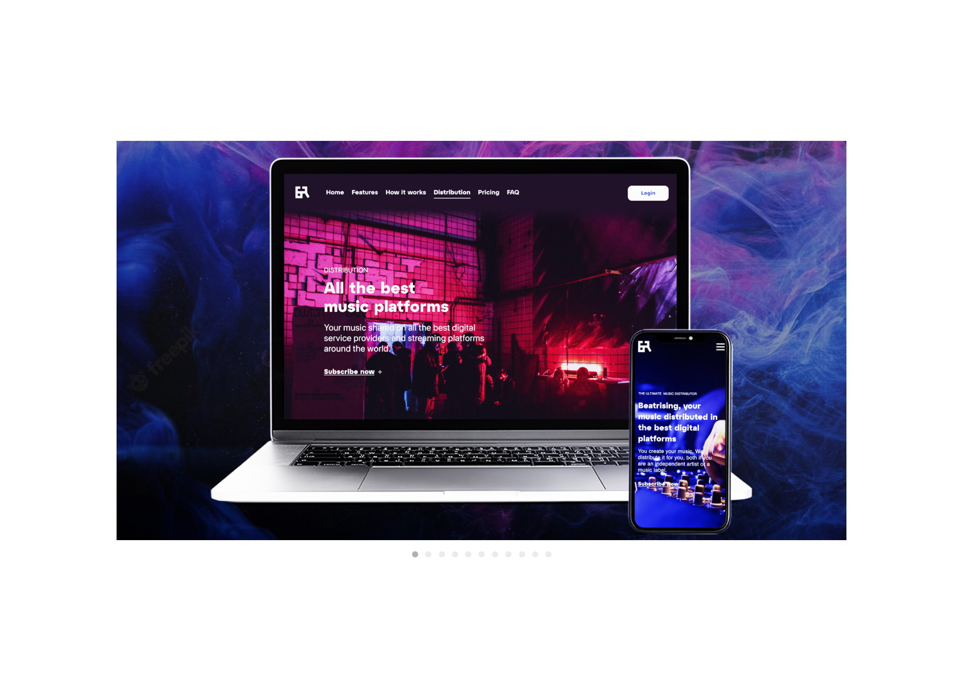 Beatrising is a german digital music distributor, founded in 2015. Their current website is quite outdated, difficult to navigate and even complex to perform the simplest tasks. Therefore, the goal of the project was to evaluate the company's proposed service offering, and also consider the integration of new services; build a new information architecture for the website so that it is easier to navigate; and finally redesign the entire website with a new, more consistent graphic style.