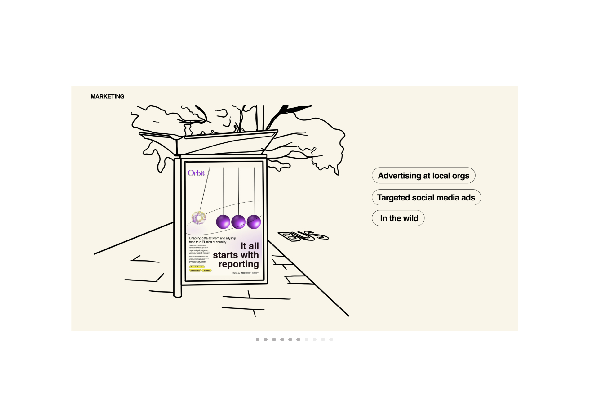 For Orbit it’s very important that not only victims, but also witnesses report, the responsibility needs to be shared to create a safer community for everyone with a very low individual effort. Therefore, to summarize, Orbit promotes diversities, physical and mental wellbeing and makes communities thrive. Moreover, Orbit aims to raise awareness on a very sensitive topic, using existing technologies, having a low impact on the environment. As stated previously, only 1 case out of ten is reported in the EU, this is not enough, Orbit aims to hit 10 out of 10 cases by reaching 30 thousand cases of anti-LGBT hate crimes reported for year.